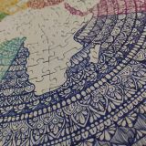 Parlando dell'immagine stessa, devo dire che è ben dettagliata e molto gradevole da guardare. La vera particolarità di questo puzzle, tuttavia, risiede nella sua forma circolare. Questo significa che i tasselli hanno forme particolari che non riescono a creare degli incastri solidi, il che fa sì che la tenuta del puzzle sia leggermente ballerina se si cerca di sollevarlo. Tuttavia, ciò non è dovuto alla qualità del taglio, ma piuttosto alla forma del puzzle stesso.